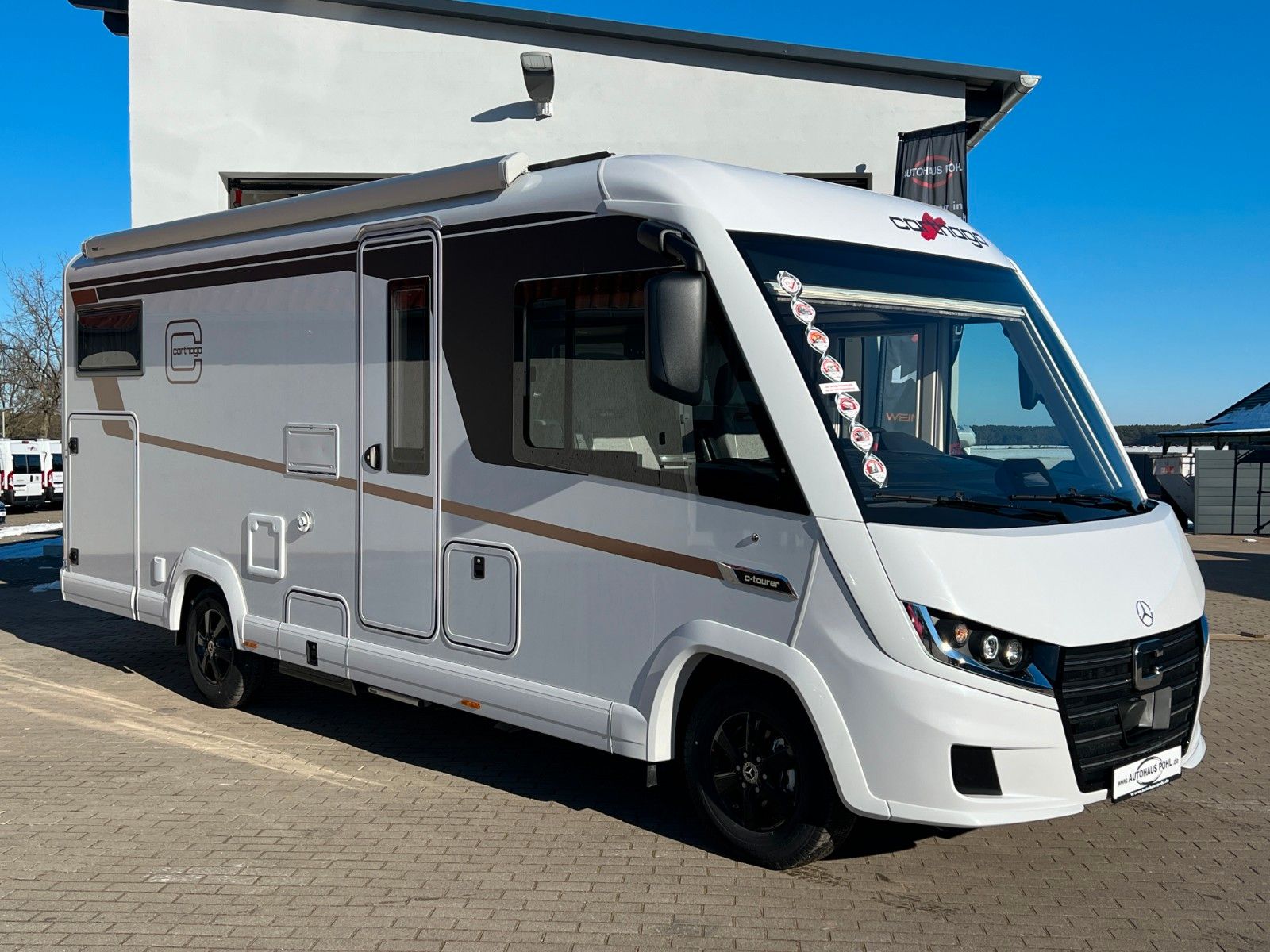 Basis-Plus-Paket 4.2 t (Radzierblenden, Halbautomatische Klimaanlage Tempmatik, Tempomat, Ladebooster, Vorderachse mit erhöhter Traglast, Kraftstofftank 92 Liter, Lederlenkrad mit Option Multifunktionstasten (bei Schaltgetriebe inkl. Leder-Schalthebel), Kombiinstrument mit Farbdisplay, Regensensor, Elektrische Feststellbremse, Fahrerhauskomfortsitze mit Neigungs- und Höhenverstellung (vorn / hinten), Radiovorbereitung mit Dachantenne mit DAB+, Lautsprecher (4x), MBUX 10,2" Multimedia inkl. Navigation und DAB+, Verkehrszeichenassistent, Dachluke Midi-Heki mit LED-Spots über L-Wohnsitzgruppe, Große Rollergaragentür auf der Fahrerseite, XL-Aufbautür "premium two 2.0" (Breite 63 cm) mit Doppelverriegelung, Fenster- und Insektenschutzrollo, SOG-Toilettenentlüftung, Abwasserschlauchset zur komfortablen Entsorgung, USB-Steckdose im Dachstauschrank über Heckbett, Vorbereitung Dachhaubenlüfter elektrisch, Vorbereitung Solaranlage, Vorbereitung Sat-Anlage, Vorbereitung Rückfahrkamera (Einzellinse))
